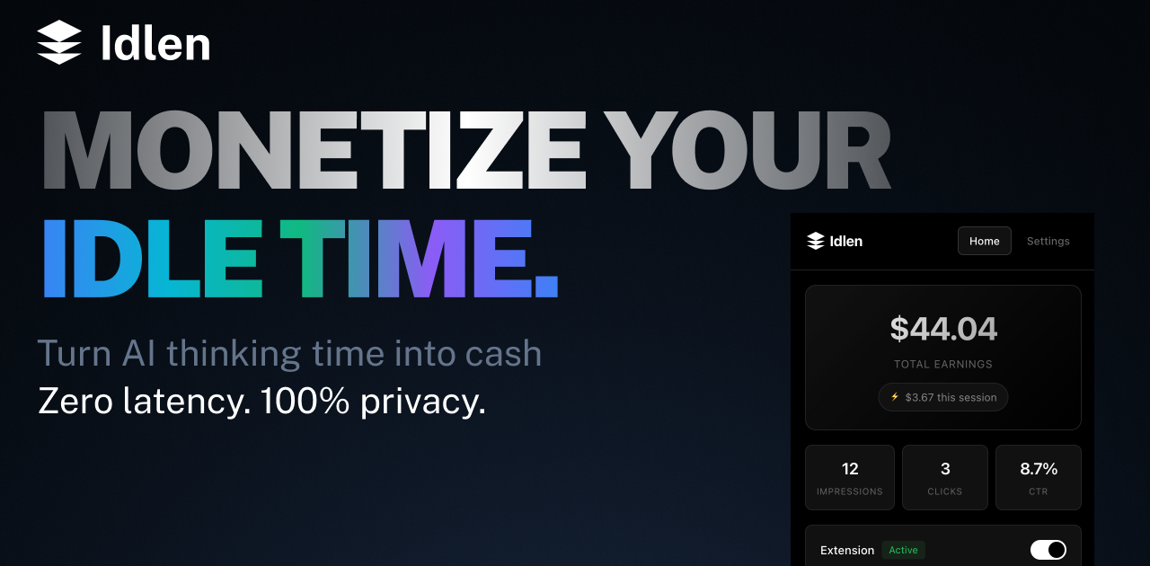Idlen offers a unique and highly beneficial solution for developers to transform their AI wait times into a valuable passive income stream, all while maintaining privacy and workflow integrity. It's an essential tool for anyone looking to monetize their coding time and cover AI-related expenses. Explore Idlen today to start earning effortlessly.