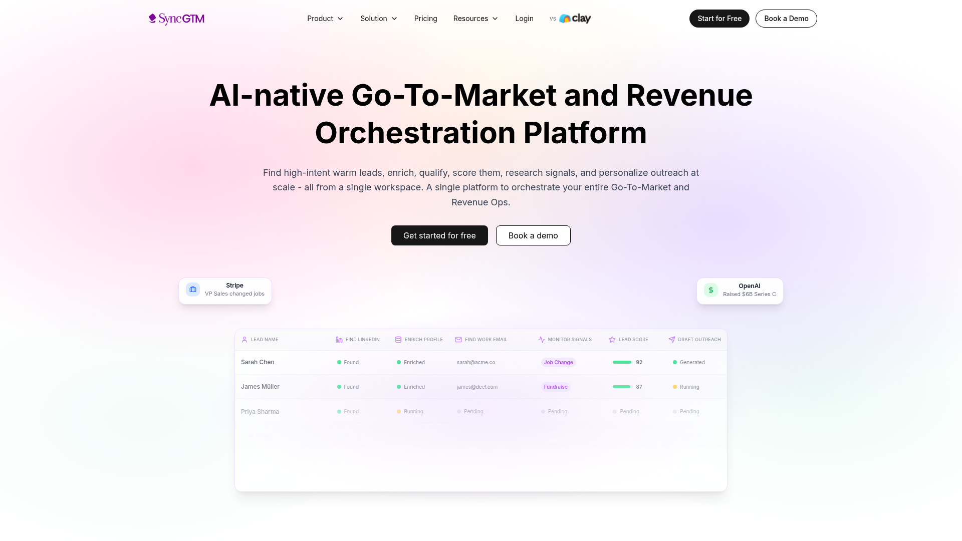SyncGTM is invaluable for sales teams looking to optimize their lead generation and qualification processes. It automates the discovery of warm leads based on specific signals, enriches their profiles with verified data, and scores them against an Ideal Customer Profile (ICP). This ensures sales reps focus their efforts on prospects with the highest buying intent, significantly reducing manual research time and improving conversion rates.